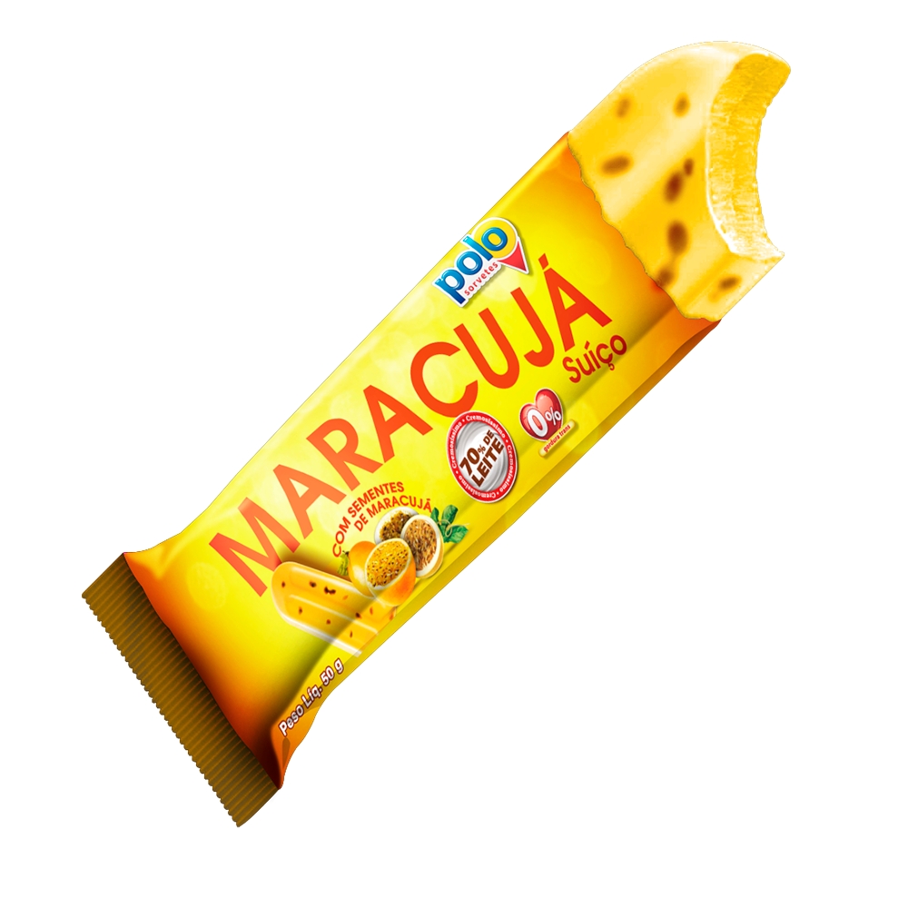 Preparado com polpa de maracujá, com 70% de leite e sementes de maracujá.
